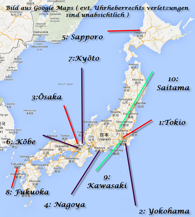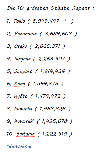 Hier findet ihr eine Liste der zehn grössten Städte Japans!